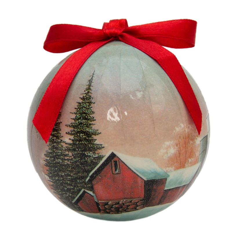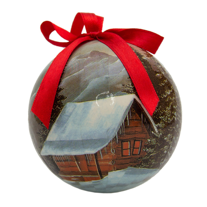 Набір ялинкових іграшок - кулі з будиночками, 14 шт, D7,5 см, білий з розписом, пінопласт (420018-1)