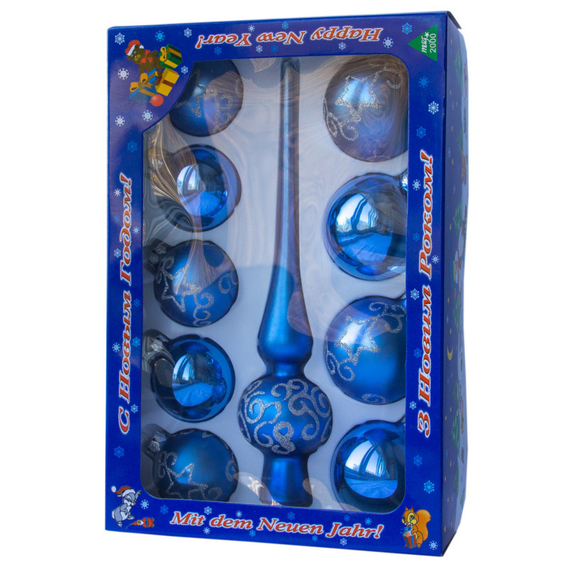 • Кількість: 10 шт (4-глянцевих, 5-матових з декором, 1-верхівка), D5 см - 5 шт, D6 см - 4 шт.