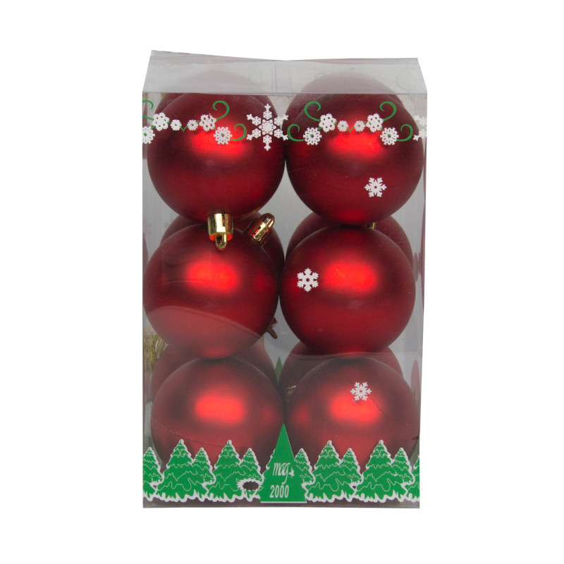 Набір ялинкових іграшок - кулі, 12 шт, D6 см, червоний, матовий, пластик (890711)