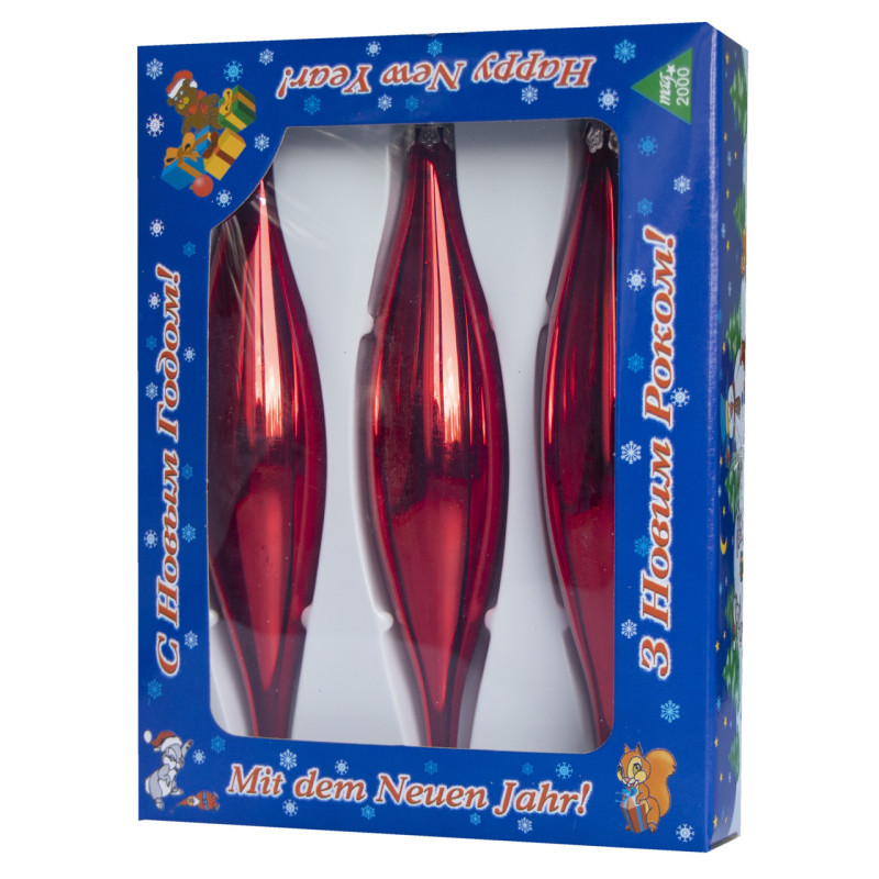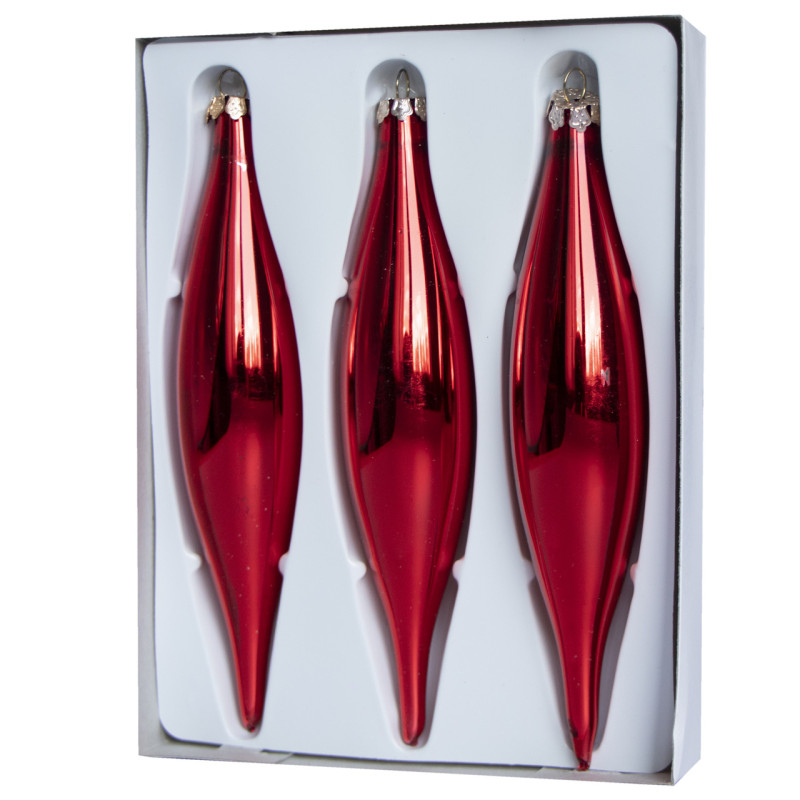 Набір ялинкових іграшок - бурульки, 3 шт, 3x15 см, червоний глянець, скло (390120-10)