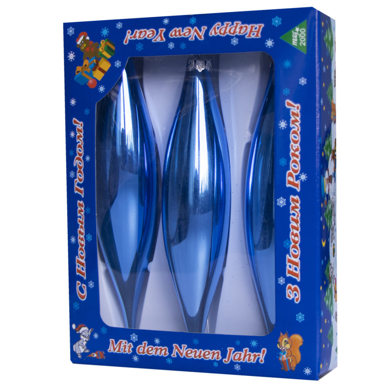 Набір ялинкових іграшок - бурульки, 3 шт, 3x15 см, синій глянець, скло (390120-9)