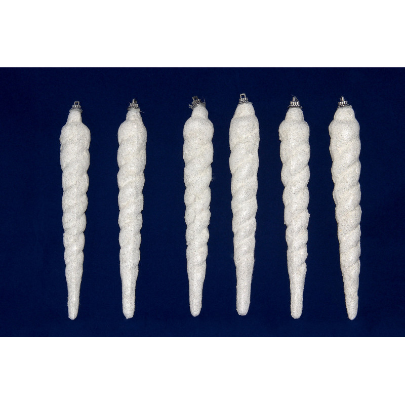 Набір ялинкових іграшок - бурульки з блискітками, 6 шт, 10 см, білий, пінопласт (200060)