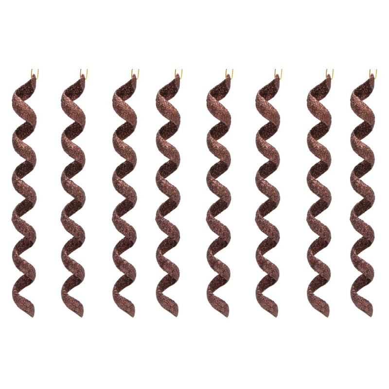 Набір ялинкових іграшок - Спіраль, 8 шт, 20 см, шоколадний, гліттер, пластик (250379)