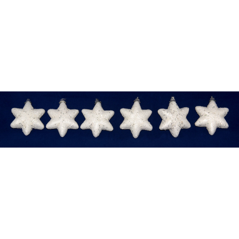 Набір ялинкових іграшок - зірочок, 6 шт, 7 см, білий, пінопласт (200312)