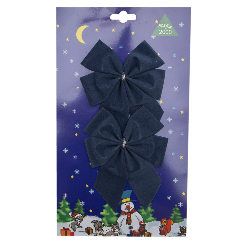 Набір ялинкових прикрас - бантики, 2 шт, 11x11 см, синій, текстиль (471072-8)