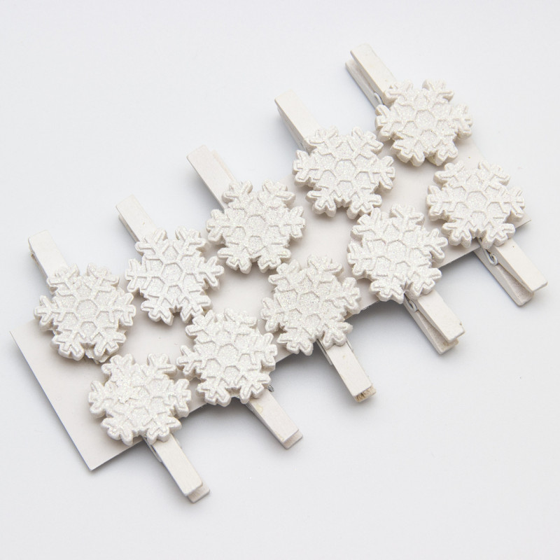 Набір іграшок на ялинку - прищіпки Сніжинка, 10 шт, 16x9 см, білий, дерево (060603-3)