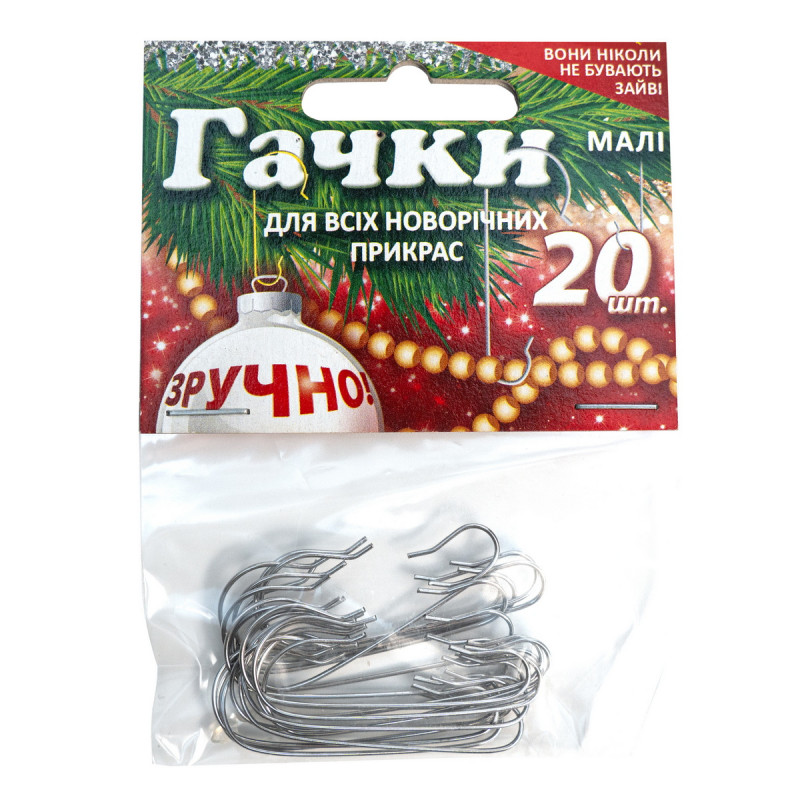 Набір гачків для новорічних прикрас срібло 4 см 20 шт (420688)