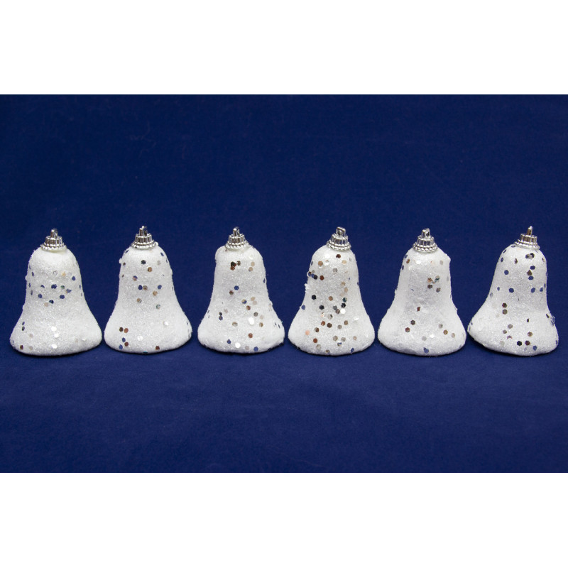 Набір новорічних іграшок - дзвіночки з блискітками, 6 шт, 6 см, білий, пінопласт (200107-2)
