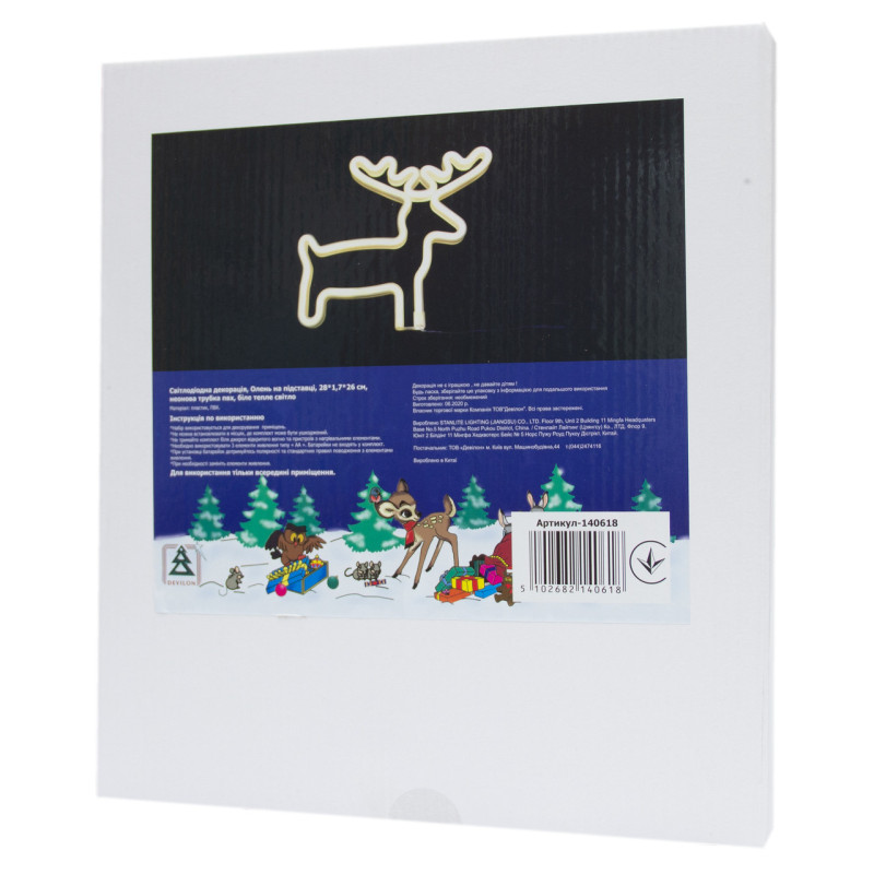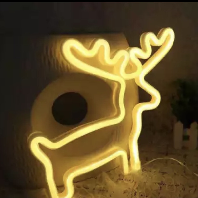 Неоновий світильник настінно-стельовий, нічник - Олень, 26x1,7x28 см, теплий білий, 3AA (140618)