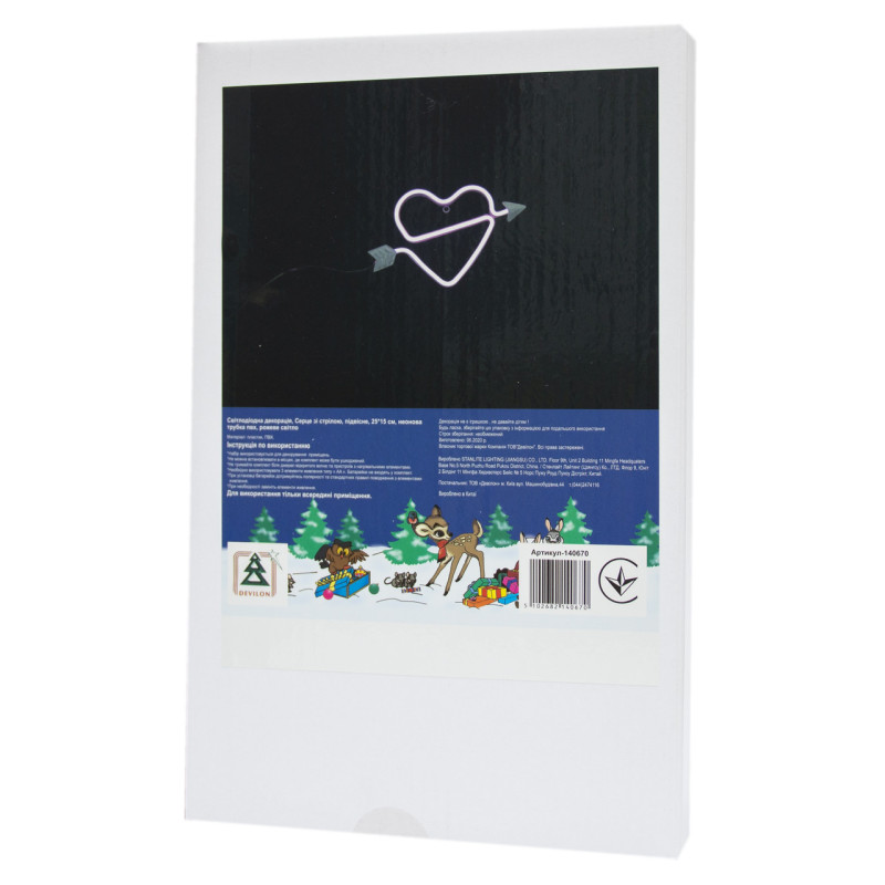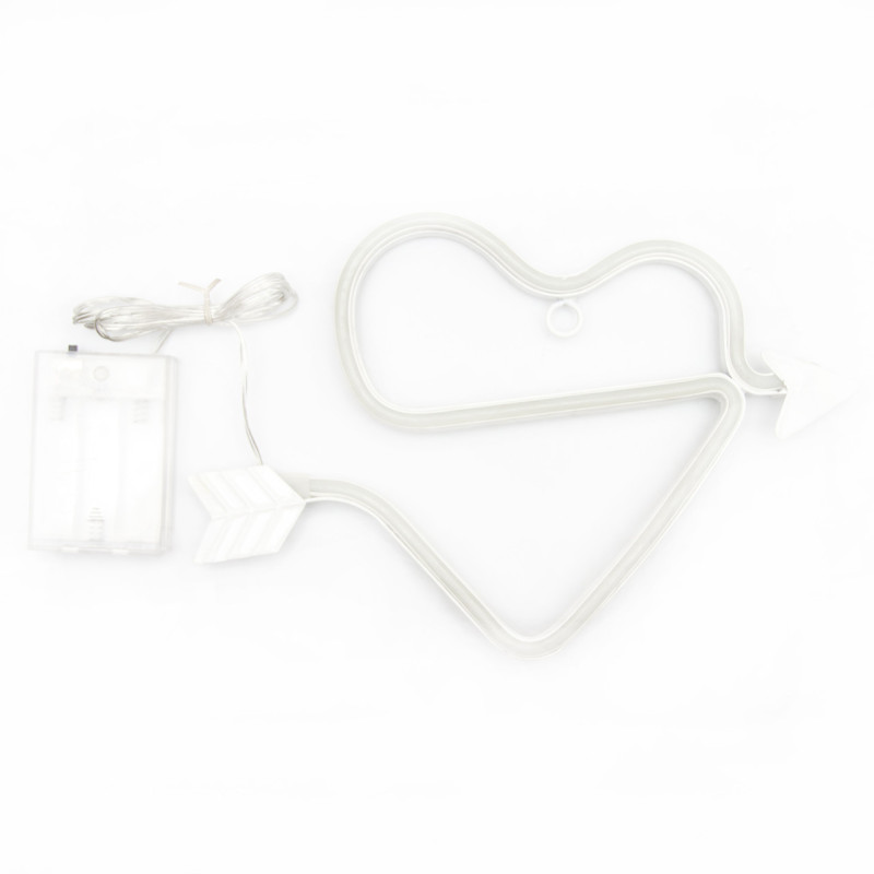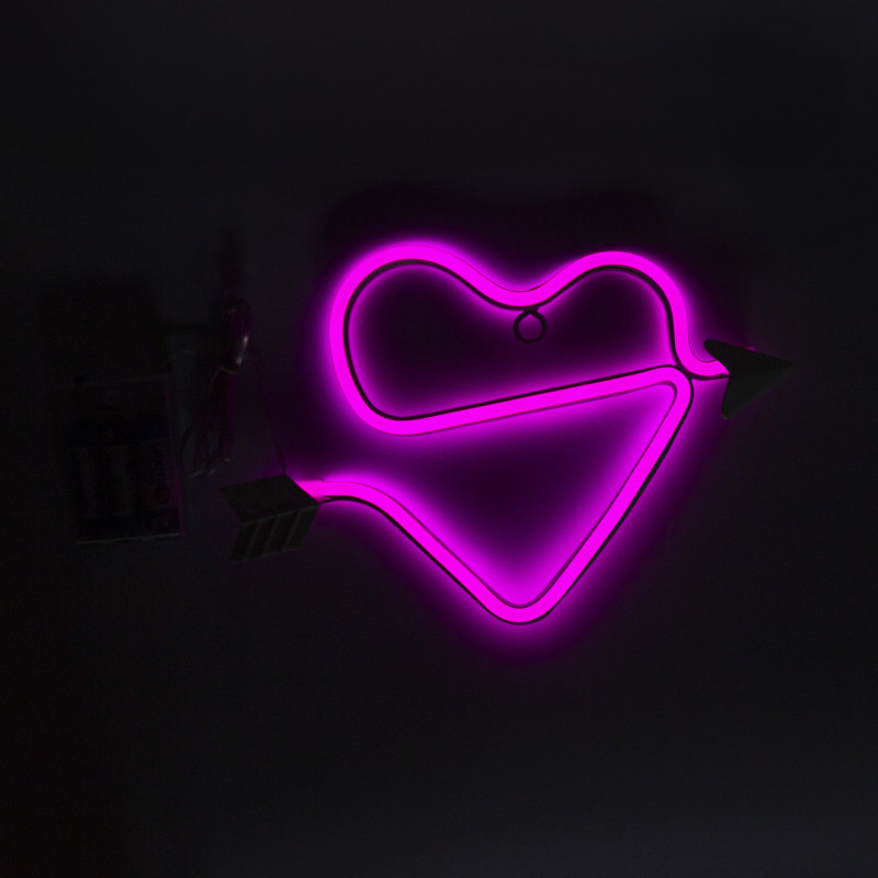 Неоновий світильник настінно-стельовий нічник - Серце зі стрілою, рожевий, 25x15 см, 3AA (140670)