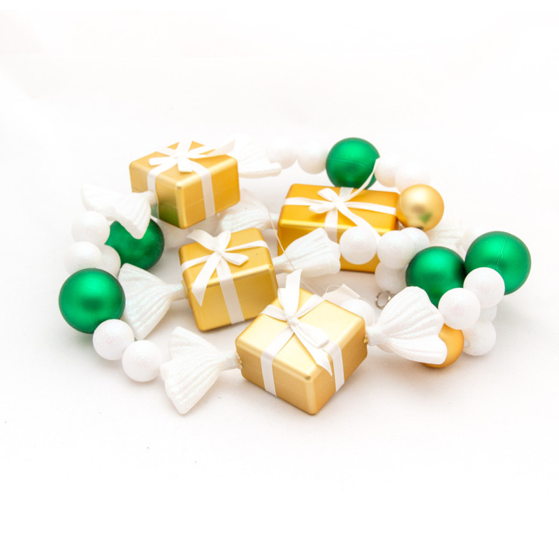 Новорічна прикраса - гірлянда з цукерок та куль, 1,83 м, золотистий, зелений, пластик (110063-1)