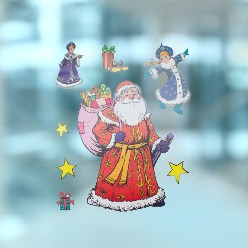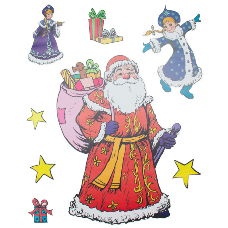 Новорічна прикраса - аркуш з наліпками, Санта (Дід Мороз) та Снігуронька, 70x50 см, різнокольоровий, ПВХ, папір (070151-2)