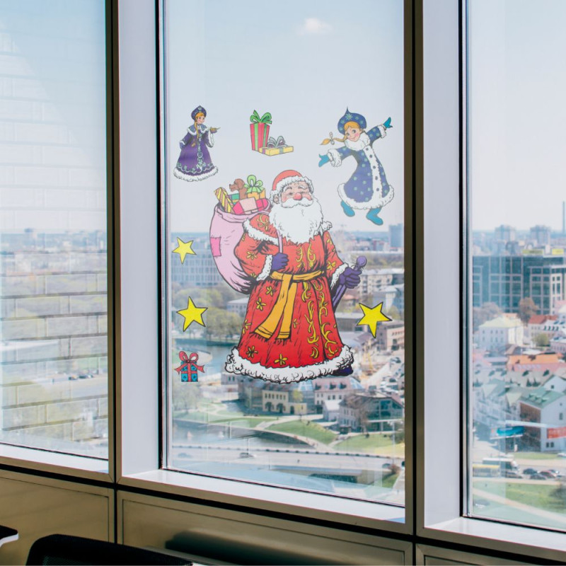 Наклейки та вітражі з ПВХ, картону або термопластичної гуми ідеально підходять для декорування дитячих кімнат. Такі новорічні прикраси додають святкової атмосфери, це недорого та швидко. Також їх можна придбати, щоб діти в дитячому садку або молодшій школі прикрасили вікна або шафки зі своїми речами. А вдома, наприклад, можна створити цілу історію з Дідом Морозом, оленями та сніжинками.