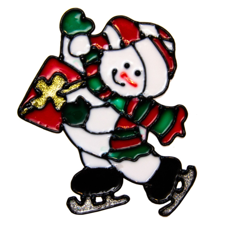 Новорічна прикраса - наліпка на вікно сніговик на ковзанах, 15x15 см, білий, ПВХ (160449-4)