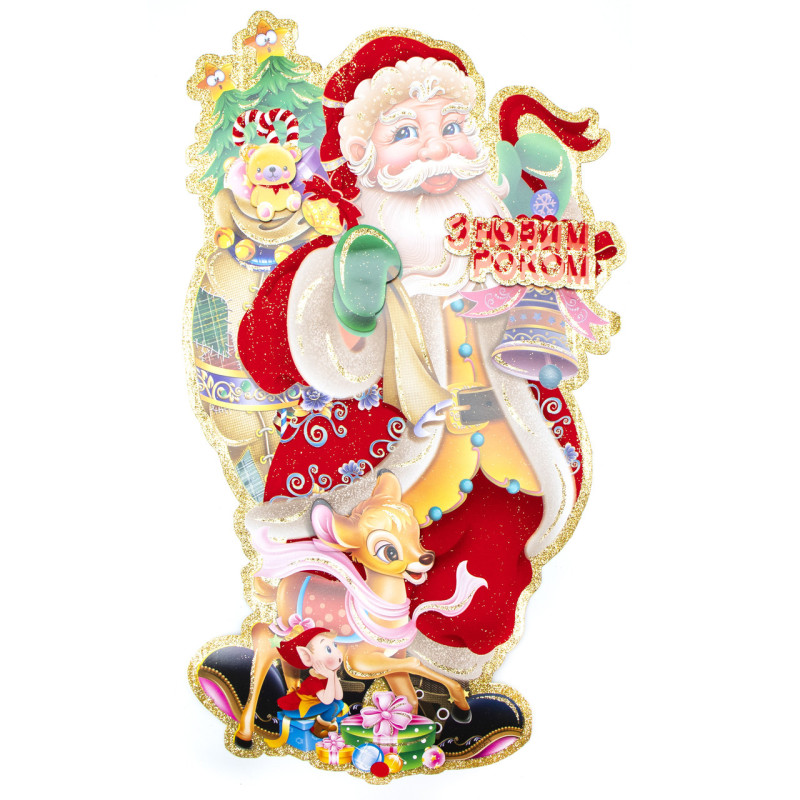 Новорічна прикраса - наліпка на вікно Санта (Дід Мороз), 37x21,5 см, різнокольоровий, папір (471485)