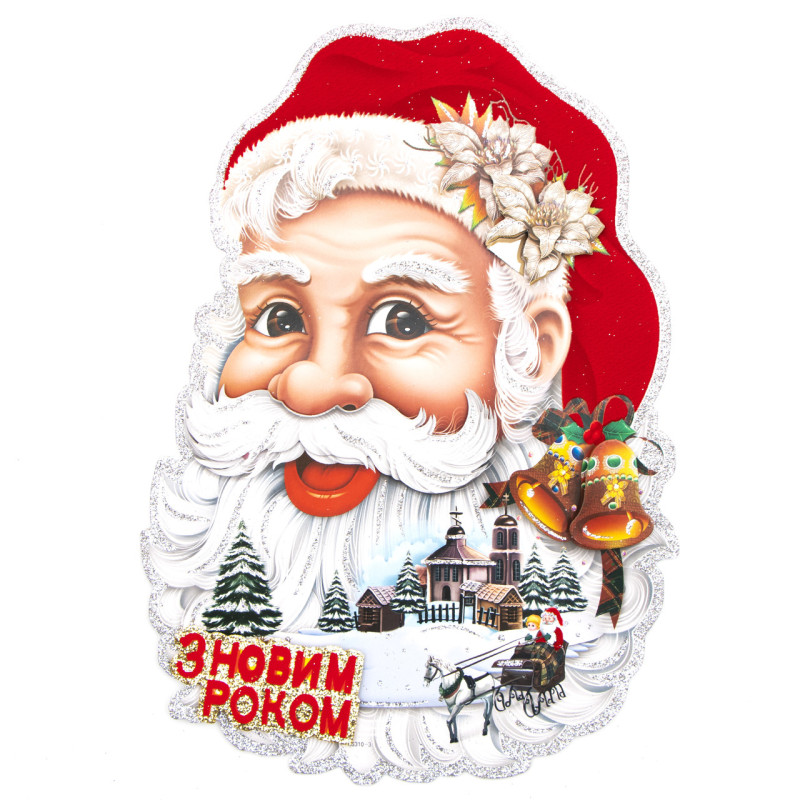 Новорічна прикраса - наліпка на вікно Санта (Дід Мороз), 39x28 см, різнокольоровий, папір (471515)