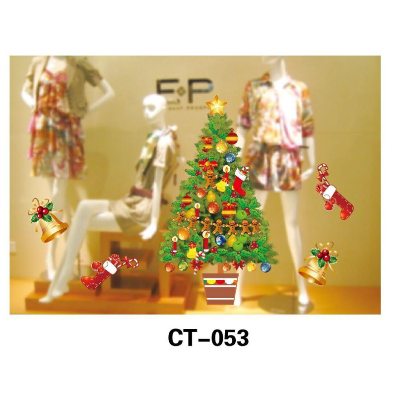 Новорічна прикраса - наліпка на вікно ялинка, 64x80 см, зелений, ПВХ, папір (080631-CT-053)