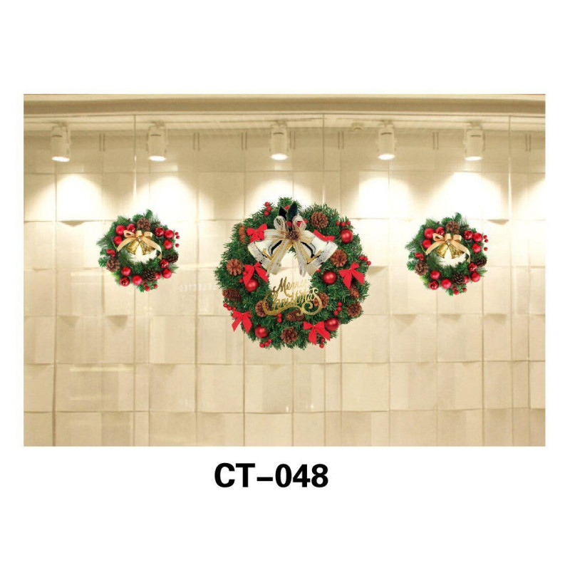 Новорічна прикраса - наліпка на вікно різдвяний вінок, 64x80 см, зелений, ПВХ (080631-CT-048)