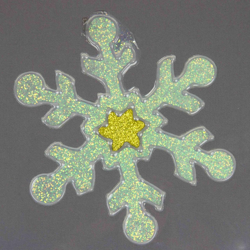 Новорічна прикраса - наклейка на вікно сніжинка, 20x20 см, золотистий, зелений, ПВХ (160265-1)