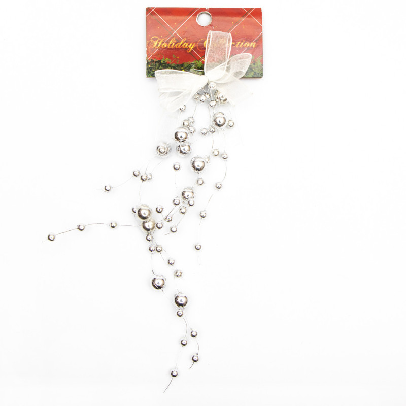 Новорічна прикраса - підвіска гроно, 20 см, сріблястий, пластик (001279-9)