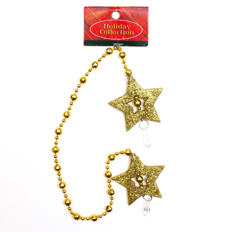 Новорічна прикраса - підвісне намисто з двома зірками, 51 см, пластик, золотий (001187-2)