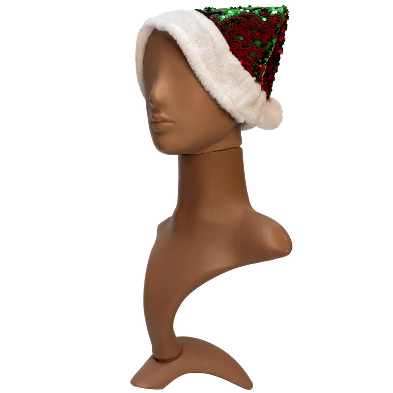 Новорічний карнавальний ковпак з блискітками, 43*30 см, червоно-зелений поліестер, пластик (462902)