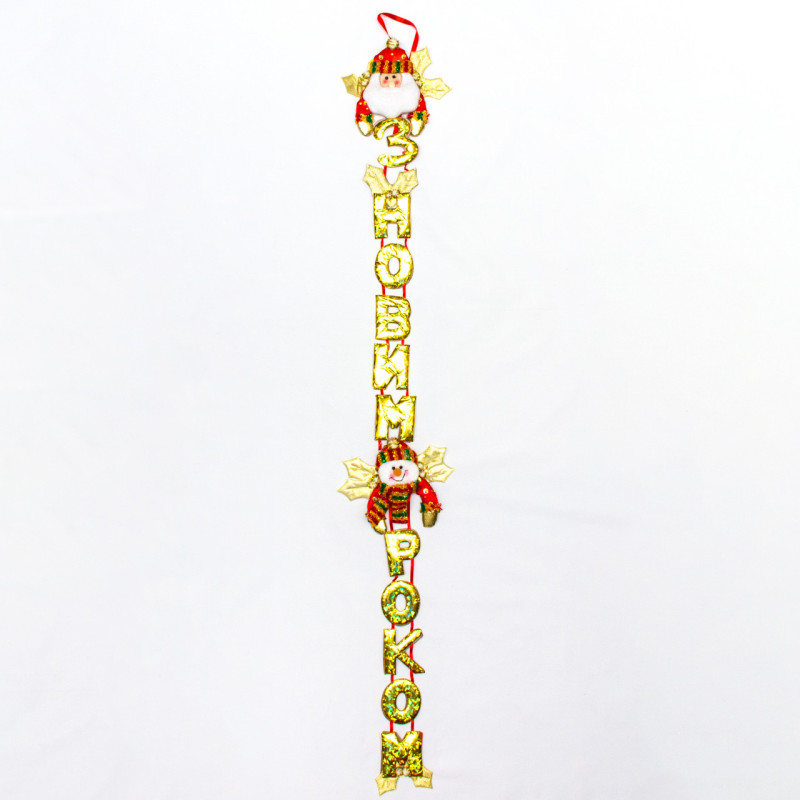Новорічна декорація - Банер-розтяжка З НОВИМ РОКОМ, 104 см, золотистий з червоним, поліестер (180974-3)