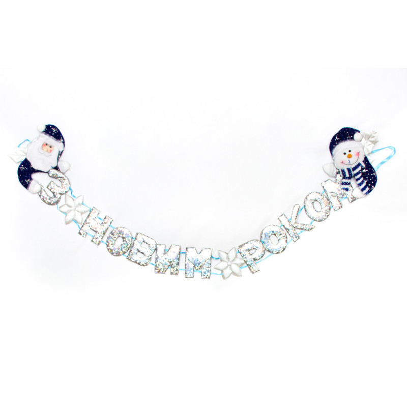 Новорічна декорація - Банер-розтяжка З НОВИМ РОКОМ, 134 см, сріблястий, поліестер (180981-1)