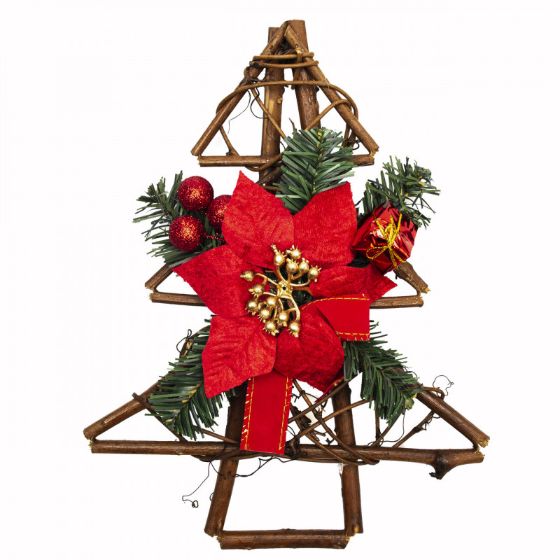 Новорічна декорація - ялинка з червоною квіткою, 30 см (930241)