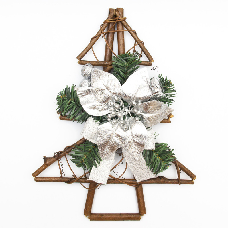 Новорічна декорація - ялинка з сріблястою квіткою, 30 см (930258)