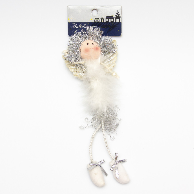 Новорічна ялинкова іграшка - фігурка Янгол, 18 см, білий, текстиль (001392)