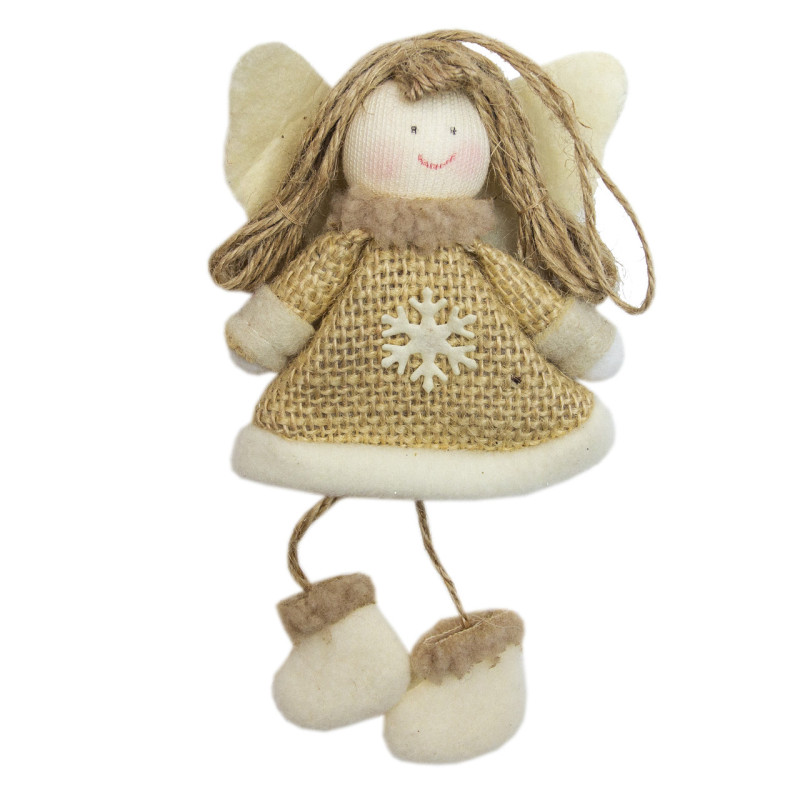 Новорічна ялинкова іграшка - фігурка Янголятко, 16 см, бежевий, текстиль (220280-2)