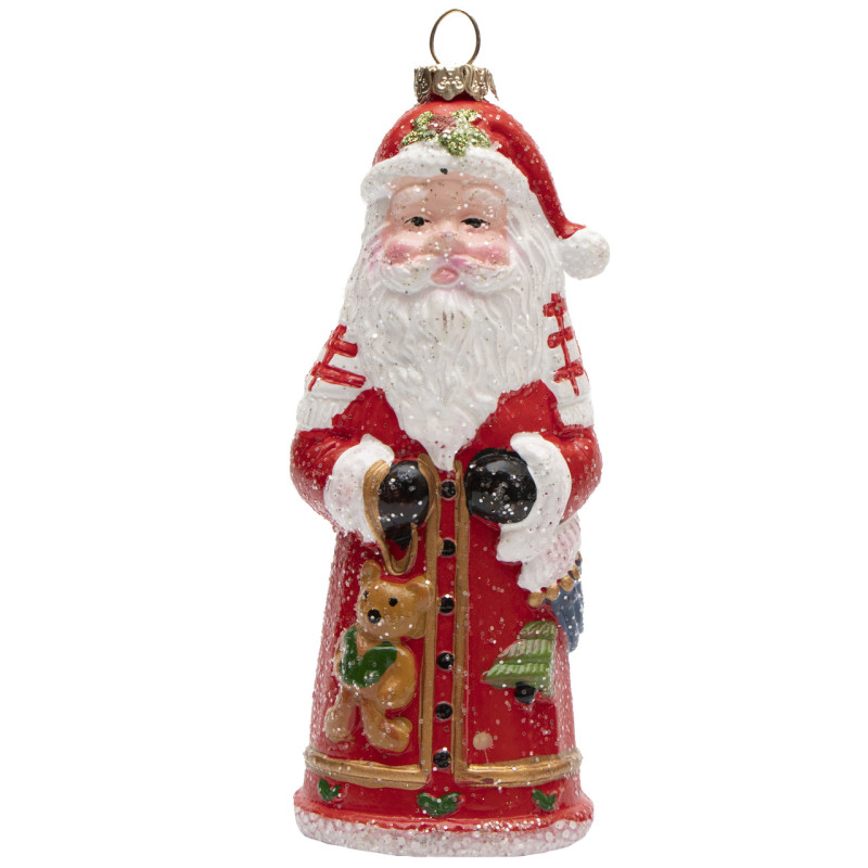 Новорічна ялинкова іграшка - фігурка Санта (Дід Мороз), 12 см, червоний, пластик (190132)
