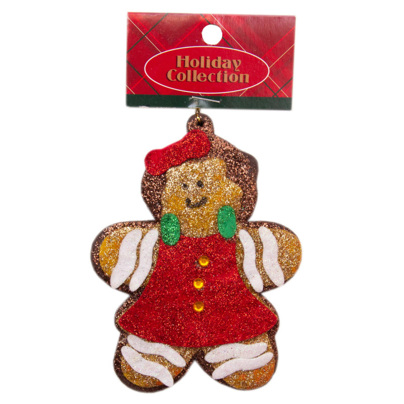 Новорічна ялинкова іграшка - фігурка Дівчинка печиво, 13 см, червоний, пінопласт (000562-9)