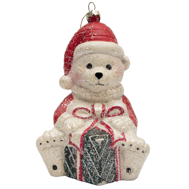 Новорічна ялинкова іграшка - фігурка Ведмідь, 13,5 см, білий, пластик (190125)