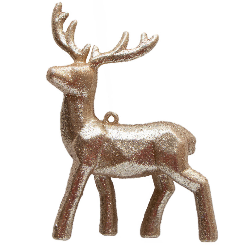 Новорічна ялинкова іграшка - фігурка Олень, 13 см, шампань, пластик (004782)