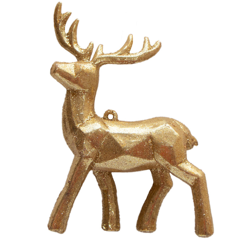 Новорічна ялинкова іграшка - фігурка Олень, 13 см, золотистий, пластик (004768)