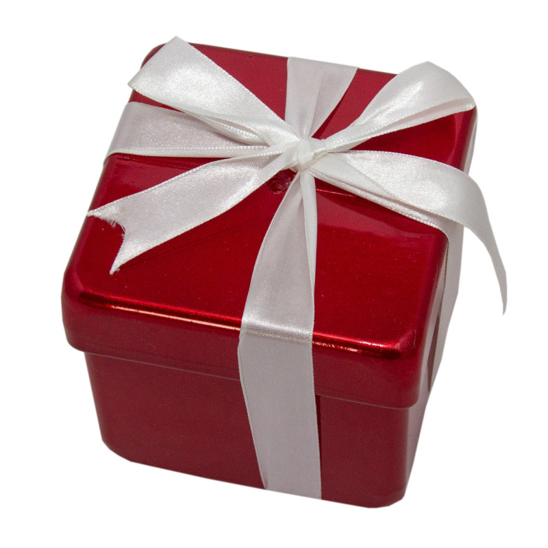 Новорічна ялинкова іграшка - фігурка Подарунок з білим бантом 10 см, червоний, пластик (110230-3)