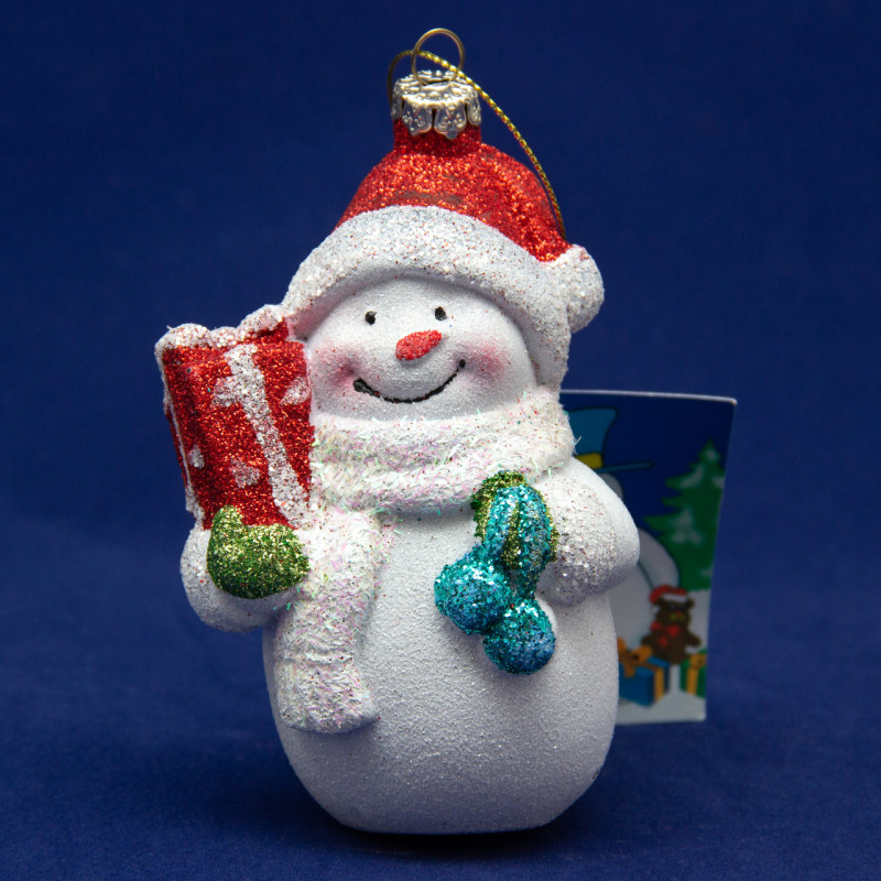 Новорічна ялинкова іграшка - фігурка Сніговик, 12 см, білий, пластик (190217)