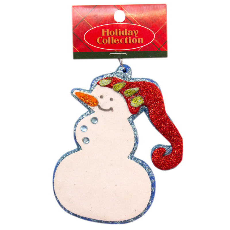 Новорічна ялинкова іграшка - фігурка Сніговик у червоній шапці, 13 см, білий, пінопласт (000562-5)