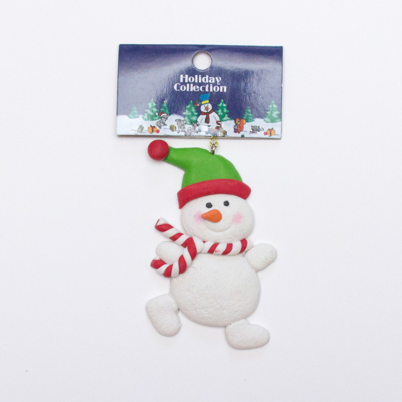 Новорічна ялинкова іграшка - фігурка Сніговик в шапці, 9 см, білий, пластик (001361-5)