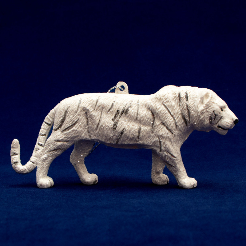 Новорічна ялинкова іграшка - фігурка Тигр, 14 см, білий, матовий, пластик (004690)