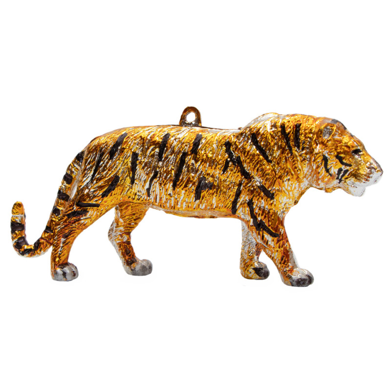 Новорічна ялинкова іграшка - фігурка Тигр, 14 см, коричневий, глянець, пластик (004676)