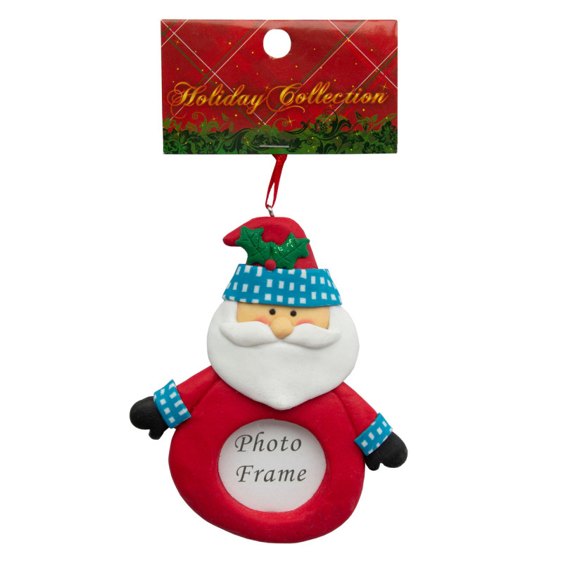 Новорічна ялинкова іграшка - фоторамка гумова Санта, 9,5 см, червоний, полірезин (001545-1)