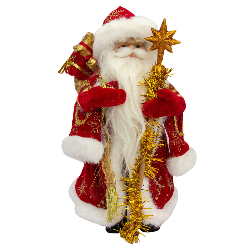 Новорічна сувенірна фігурка Санта (Дід Мороз) в червоній шубі, 30 см, пластик, текстиль (600229)