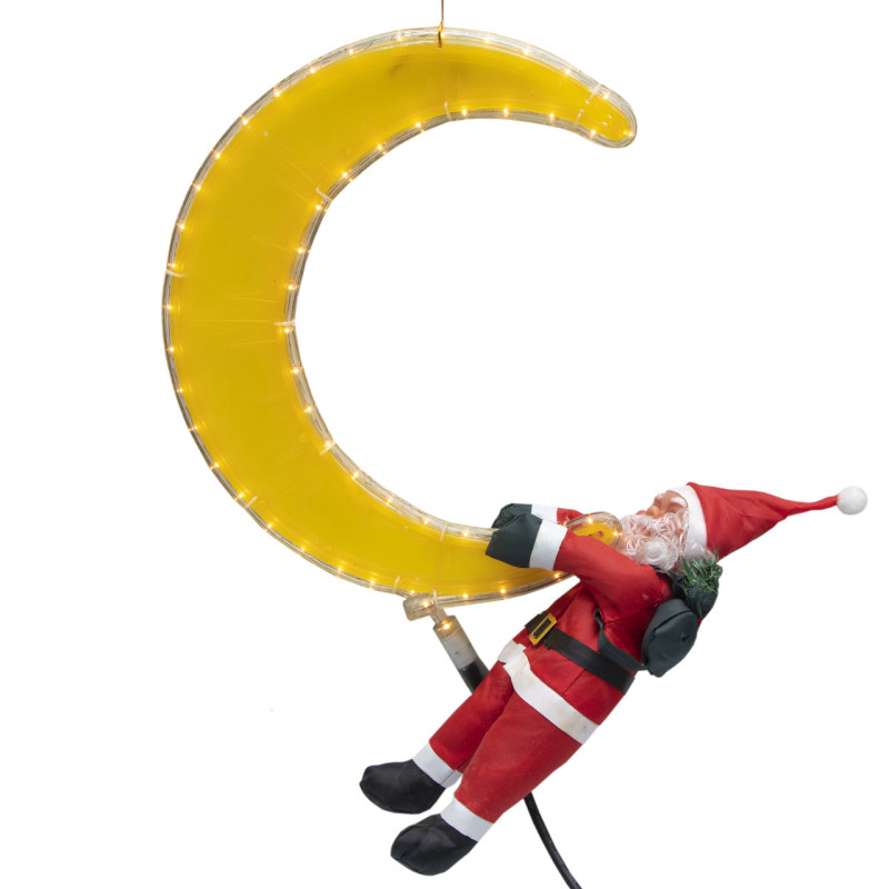 Новорічна світлодіодна декорація - Санта (Дід Мороз) висить на місяці, 30 см, L 45 см, червоний, дюралайт, IP44 (350384)