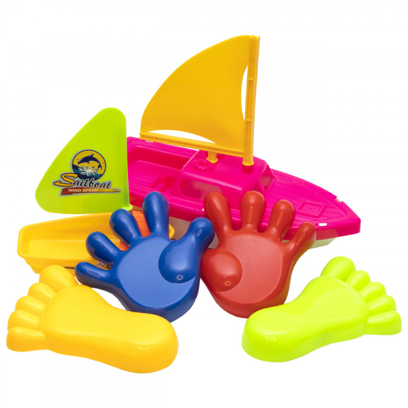 Пісочний набір - пасочки та кораблики, 6 шт, сітка, червоний, пластик (DBS11020-2)