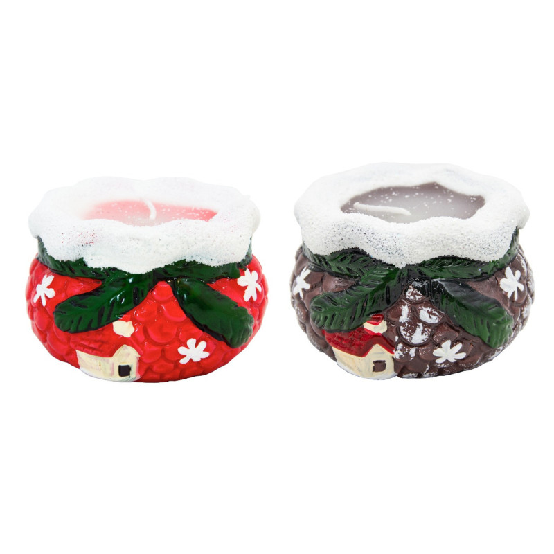 Підсвічник - Шишка зі свічкою, 7,6x7x5 см, червоний, кераміка (442584-2)