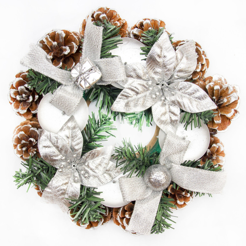 Підсвічник - Вінок з квітами та декором, 23 см, сріблястий (930166)