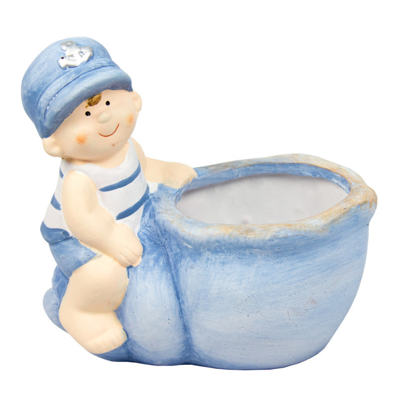 Садова декорація - кашпо хлопчик, 13,7x13,5x8,5 см, блакитний, кераміка (820238-2) для декору та інтер'єру (820238-2)